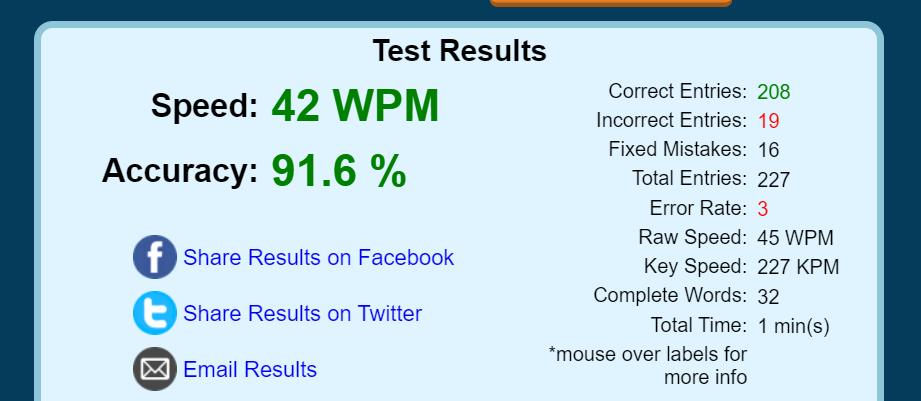 생각보다 영어타자도 나쁘지는 않은 것 같더라고요. 일단 정확성이 스피드보다 좀 중요하니까 그걸 더 많이 생각해봤던 것 같습니다. 한타와 영타에서 차이점은 우리는 타 타 이러는데 영어타자를 보면 WPM으로 확인해서 브래드와 저가 타자 얼마나 치는지 물어봤는데 WPM으로 말해서 200이 안넘는게 되니까 엥 말도 알되 한 적이 있거든요. 이제 이해가 되네요!